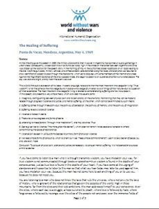 This is Silo’s first public expression of his ideas. In poetic language, he explains that the most important knowledge for living (“true wisdom”) is not the same as the knowledge found in books—knowledge of universal laws or things of that nature—but is a question of inner experience. The most important knowledge for living is related to comprehending suffering and how to surpass it.